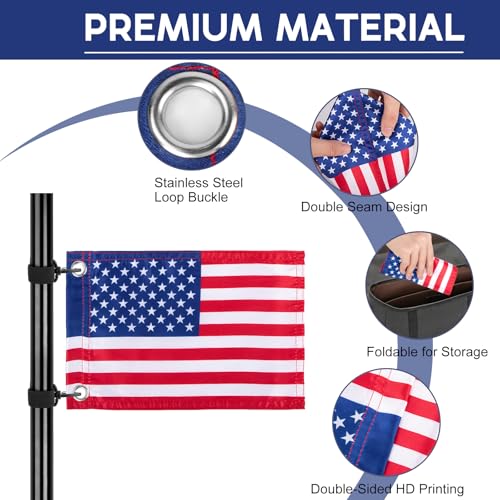 | Introduction | Golf enthusiasts and patriotic individuals alike will appreciate the 2PCS Golf Cart Flags set. These flags are designed to bring a touch of American pride to your golf cart, boat, bike, or any other vehicle. Made from high-quality Slik Satin fabric, these flags are both durable and visually striking. | ||||||||||