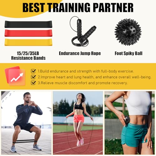 The Agility Speed Training Equipment Set is a must-have for athletes looking to enhance their performance across various sports including basketball, football, and soccer. This comprehensive set includes a 20-ft high-strength nylon agility ladder with soft and durable PE rungs, 4 adjustable-height ABS agility hurdles, 12 durable PE training cones, a high-resistance running parachute, a professional jump rope, a spiked ball for muscle relaxation, 3 latex leg resistance bands (15, 25, 35LB), and a detailed instruction manual.Each component is designed with high-quality materials to ensure durability and long-term use. The agility ladder's fixed-width design helps prevent tripping hazards, making training safer and more efficient. The hurdles can rotate 180 degrees for easy height adjustment, while the training cones are perfect for marking locations and dodging drills. The running parachute offers resistance training to build strength and endurance.This training set is suitable for individuals of all ages and skill levels—kids, youth, adults, athletes, coaches, and fitness enthusiasts alike. It is designed to improve leg speed, strength, endurance, overall body agility, and coordination. Feedback from users highlights significant improvements in their training routines.Portability is a key feature of this set. All components come in a convenient carrying bag that makes it easy to transport and store the equipment. Whether you're training in your yard, park, gym, or at home, this set allows you to practice regardless of weather conditions.The included spiked ball is perfect for post-training foot muscle relaxation and massage to reduce the risk of injury. Additionally, the resistance bands made of skin-friendly latex are ideal for exercises like crab walks and squats that target muscle growth.To help you get the most out of your training sessions, a comprehensive training guide is included. This guide provides detailed instructions and professional tips to maximize your results.We stand by our product with comprehensive brand assurance and a 1-year after-sales service guarantee. Your satisfaction is our priority. If you have any questions about the agility ladder set or encounter any issues, please contact us. We will respond within 24 hours to ensure you have a risk-free shopping experience.